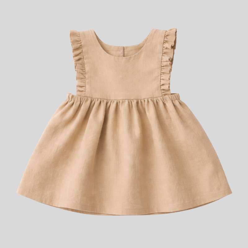 Perfecto para paseos, celebraciones o eventos informales, este pichi de lino es una opción ideal para mantener a las pequeñas frescas y con estilo.