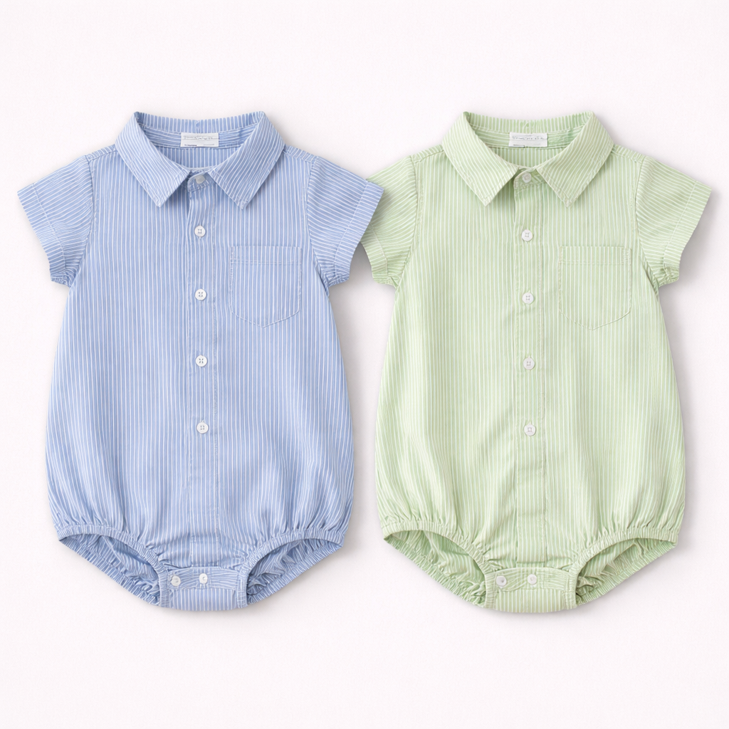 El Pelele Baby Roman en colores azul y verde es una prenda encantadora y fresca, ideal para mantener a los más pequeños cómodos y con estilo en cualquier ocasión. Con un diseño elegante pero cómodo, este pelele presenta un estilo de camisa clásica que combina con un ajuste práctico y funcional.